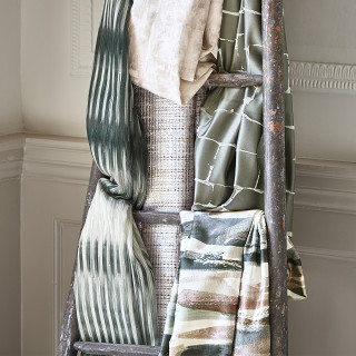 Replicating the rich tones, depth and detail found in a natural, mountainous landscape, this boldly artistic design is jacquard woven then printed to give an energetic diffusion of colour and texture that is unpredictable and ever-changing. Beautifully textured, Danxia has an appealing softness and fluid drape.