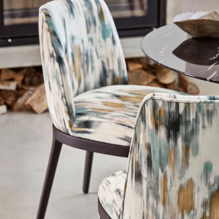Evocative, diffused, and abstracted floral with a hazy, fluid movement punctuated with striking bursts of colour, printed on luxurious velvet.