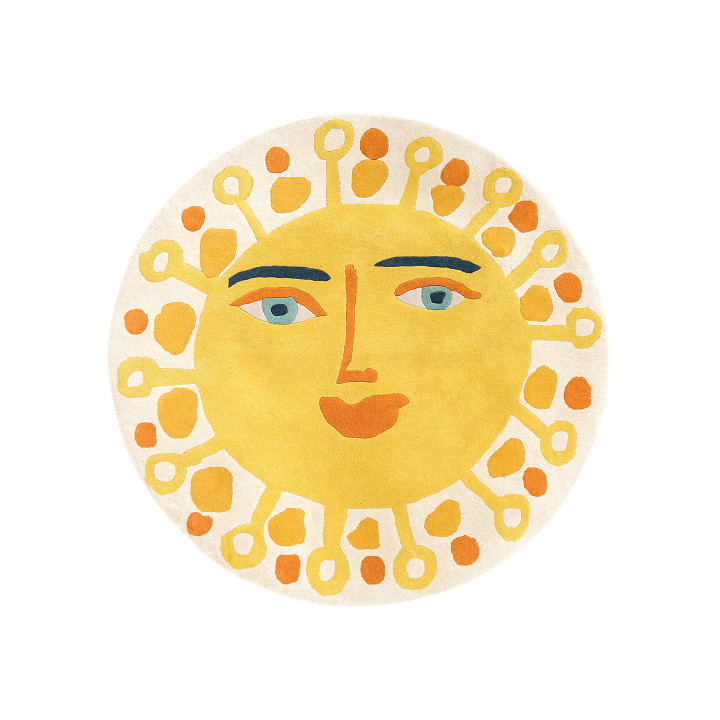 Brighten up any room with this cheerful sunshine face emblazoned with a sunny smile. This vibrant hand tufted wool rug creates an eye-catching feature.