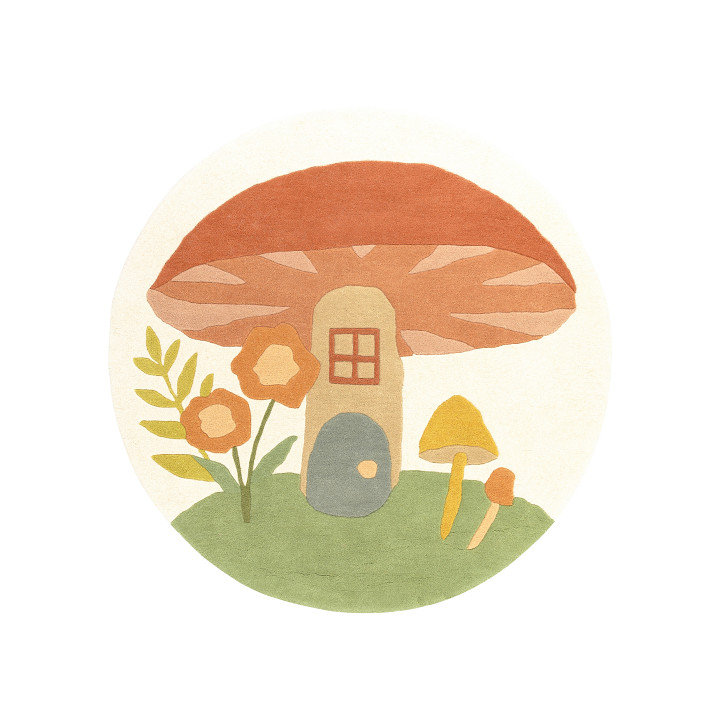 A delightful toadstool straight out of a storybook, features at the centre of this enchanting hand tufted wool rug, beautifully enhanced by hand-carving detailing.