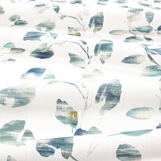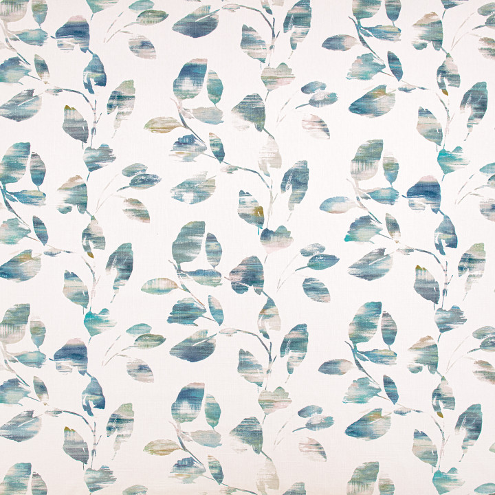 Elegantes Blattwerk mit Pinselstrichen, die sich zu faszinierenden Aquarelleffekten mit Variationen in Farbe und Lichtdurchlässigkeit vermischen, digital gedruckt auf geschmeidiger Baumwolle.
