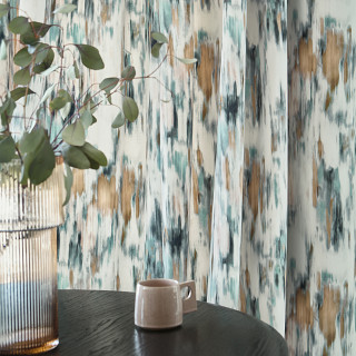 Stimmungsvolle, diffuse und abstrahierte Blüte mit einer verschwommenen, fließenden Bewegung, unterbrochen von auffälligen Farbtupfern, gedruckt auf luxuriösem Samt.